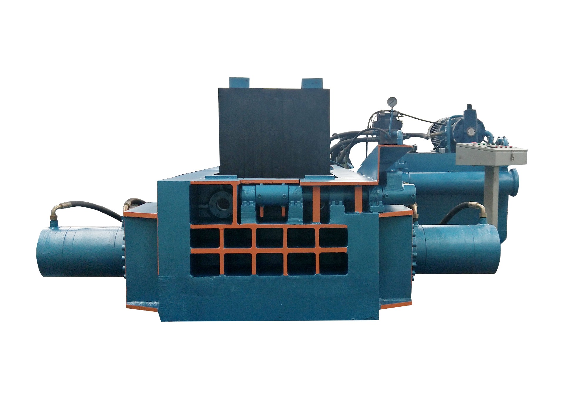 描述: 用途 Y81系列金屬液壓打包機(jī)可將各種金屬?gòu)U邊料(鋼刨花、廢鋼、廢鋁、廢銅、廢不銹鋼以及報(bào)廢汽車(chē)廢料等)擠壓成長(zhǎng)方體、八角形體,圓柱體等各種形狀的合格爐料。既可降低運(yùn)輸和冶煉成本,又可提高投爐速度。該系列打包機(jī)主要適用于鋼廠、回收加工行業(yè)及有色、黑色金屬冶煉行業(yè)。 特點(diǎn) 1、所有機(jī)型均采用液壓驅(qū)動(dòng),可選擇手動(dòng)或PLC自動(dòng)控制操作。 2、出料形式有翻包、推包(側(cè)推和前推)或人工取包(扛包)等不同方式。 3、安裝無(wú)需底腳螺絲,在無(wú)電源的地方,可采用柴油機(jī)作動(dòng)力。 4、擠壓力從63噸至1500噸有十幾個(gè)等級(jí),生···