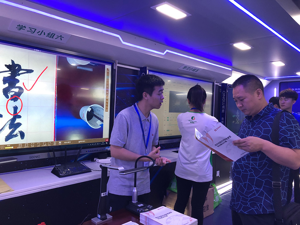 “創新公益行”大篷車首站在楊凌邰城實驗學校正式亮相,啟動儀式結束后,各級領導、師生紛紛走進車內進行參觀體驗,吉星為大家帶來最新的智慧校園全互動系統、未來智慧書法教室等創新教育信息化應用,贏得了前來參加活動的各位領導和師生的認可。