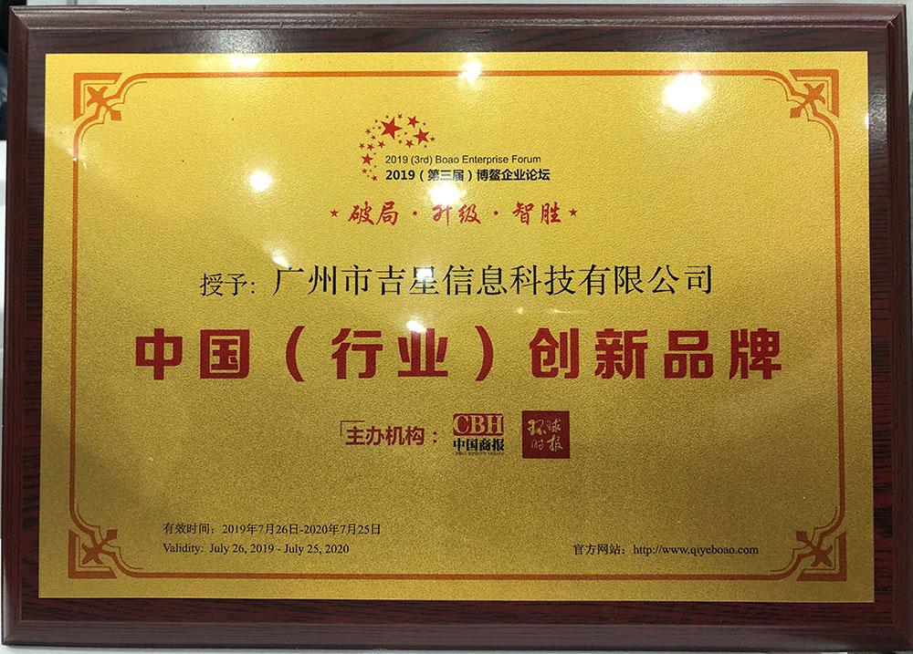 憑借著在教育行業(yè)的不斷探索深耕,廣州市吉星信息科技有限公司在本次2019(第三屆)博鰲企業(yè)論壇榮膺兩項(xiàng)大獎(jiǎng)。廣州市吉星信息科技有限公司被授予“中國(行業(yè))創(chuàng)新品牌”榮譽(yù)稱號(hào)。