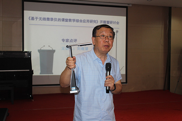 中國教育技術(shù)協(xié)會(huì)學(xué)術(shù)委員會(huì)副主任劉雍潛對(duì)《基于無線微錄儀的課堂教學(xué)綜合創(chuàng)新應(yīng)用研究》總課題進(jìn)行點(diǎn)評(píng)。